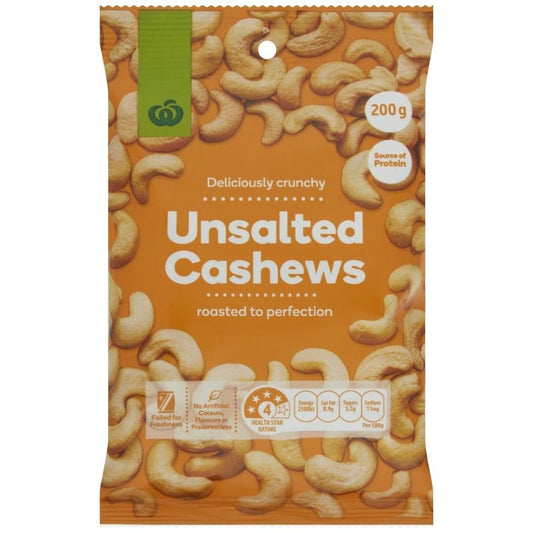 [Expiry: 24/06/2026] Woolworths Unsalted Cashews 200g
