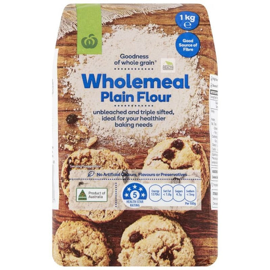 [Expiry: 22/09/2026] Woolworths Wholemeal Plain Flour 1kg