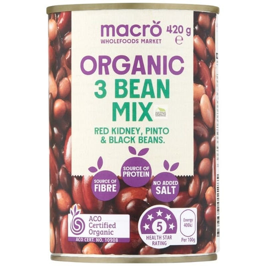 [Expiry: 31/03/2028] Woolworths Macro Organic 3 Bean Mix No Added Salt 420g