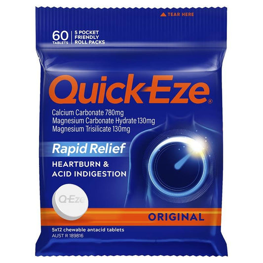 [CLEARANCE Expiry: 08/2024] Quick-Eze Antacid Original 5x12 Chewable Tablets Multipack