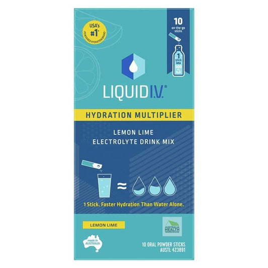 [CLEARANCE Expiry: 08/2025] Liquid I.V. Hydration Multiplier 10 Powder Sticks - Lemon Lime Flavour