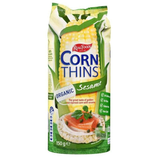 [Expiry: 01/06/2026] Real Foods Corn Thins Organic Sesame 150g