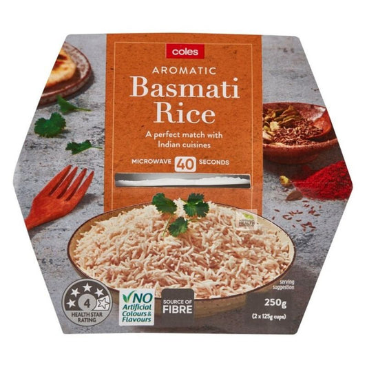 [CLEARANCE Expiry: 28/08/2025] Coles Aromatic Basmati Microwave Rice Cups (2 x 125g) 250g