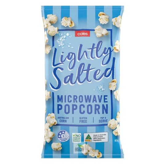 [CLEARANCE Expiry: 22/04/2025] Coles Lightly Salted Microwave Popcorn 80g
