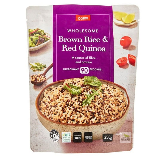 [CLEARANCE Expiry: 19/06/2025] Coles Wholesome Brown Rice & Red Quinoa Microwave Rice 250g