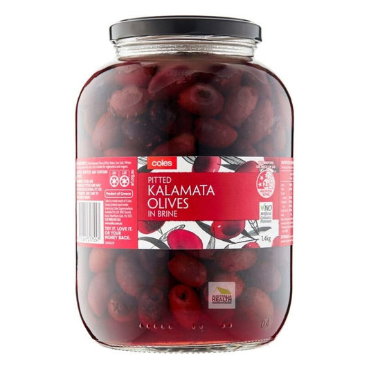 [Expiry: 06/03/2026] Coles Kalamata Olives Pitted 1.4kg