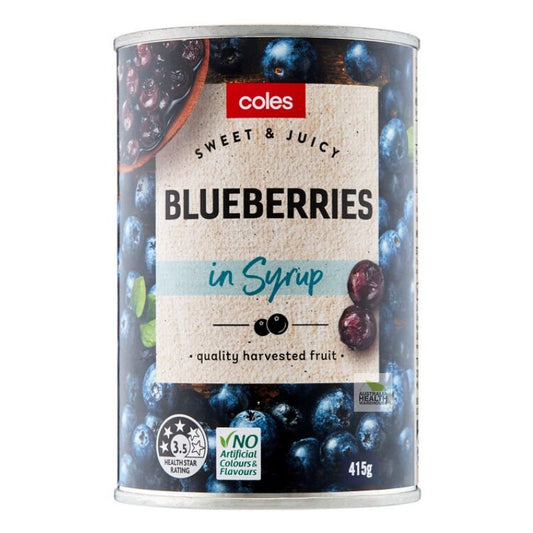 [CLEARANCE Expiry: 10/2025] Coles Blueberries in Syrup 415g