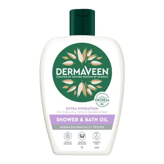 [Expiry: 01/2028] DermaVeen Extra Hydration Shower & Bath Oil 1 Litre (No Pump)