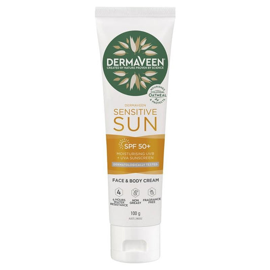 [Expiry: 11/2027] Dermaveen Sensitive Sun SPF 50+ Moisturising Sunscreen Face & Body 100g