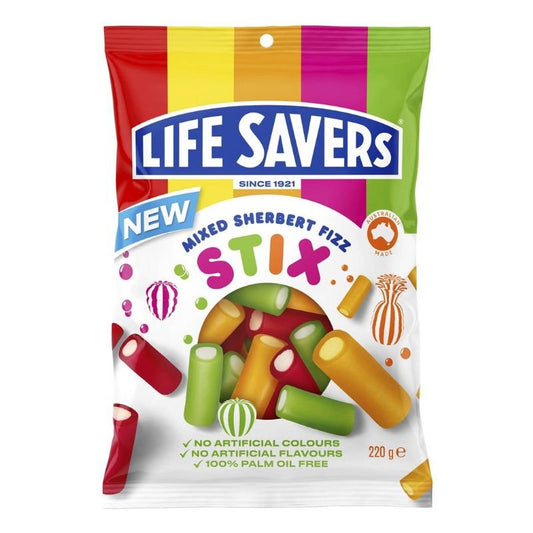 [EXP: 05/06/24] Lifesavers Mixed Sherbert Fizz Stix 220g