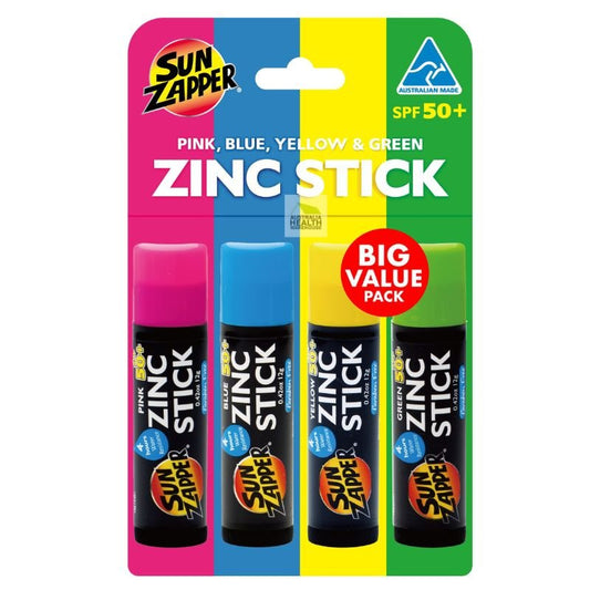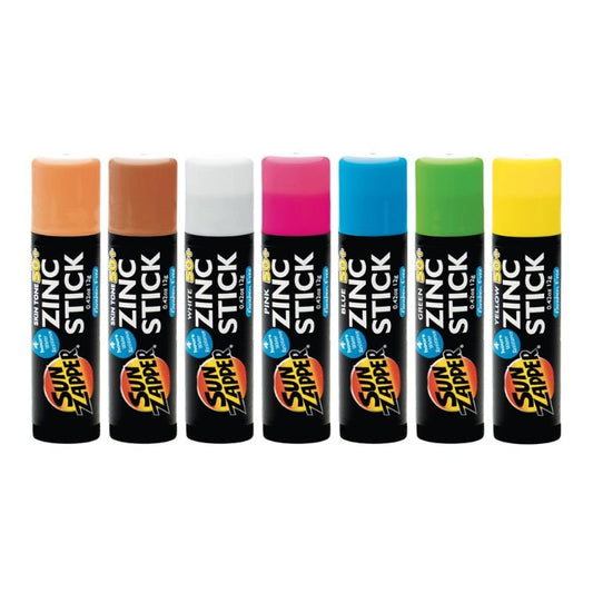 Sun Zapper Zinc Sticks SPF 50+ Mixed Pack 4 x 12g Pink, Blue, Yellow & Green