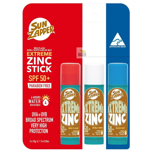 Sun Zapper Extreme Zinc Sticks SPF 50+ Mixed Pack 3 x 15g Red, White & Blue
