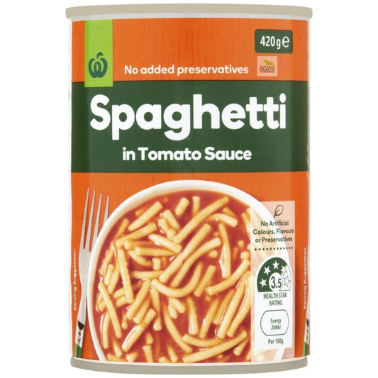 Woolworths Spaghetti In Tomato Sauce 420g