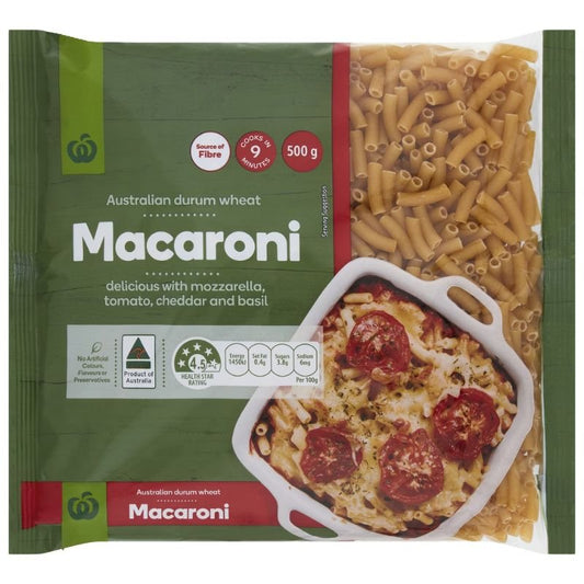 [Expiry: 08/08/2027] Woolworths Durum Wheat Pasta Macaroni 500g