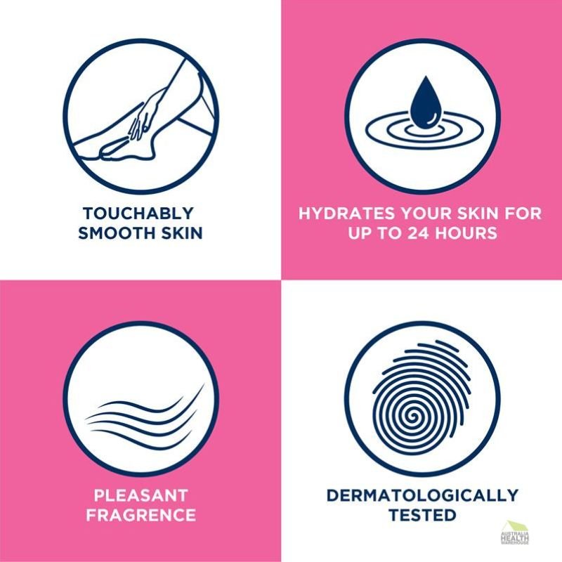 The result will be silky smooth legs for up to twice as long as shaving. Put redness and stubble behind you. The depilatory cream removes hair close to the root. So, you'll not just have smooth skin, but hair regrowth feels softer too.