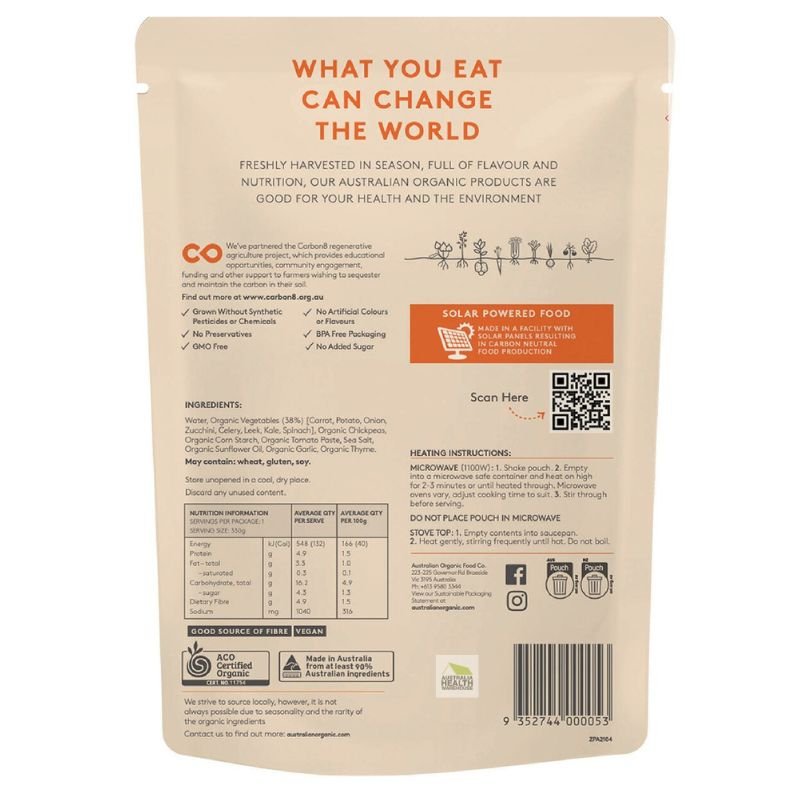 [Expiry: 02/2027] Australian Organic 8 Vegetable Minestrone Soup Pouch 330g