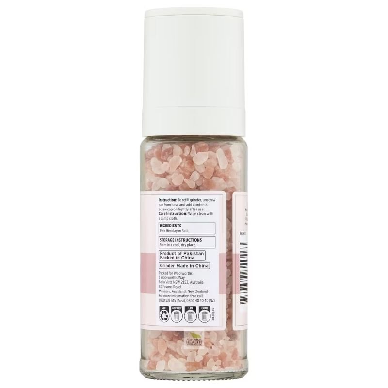 [Expiry: 22/03/2027] Woolworths Himalayan Pink Salt Refillable Grinder 250g