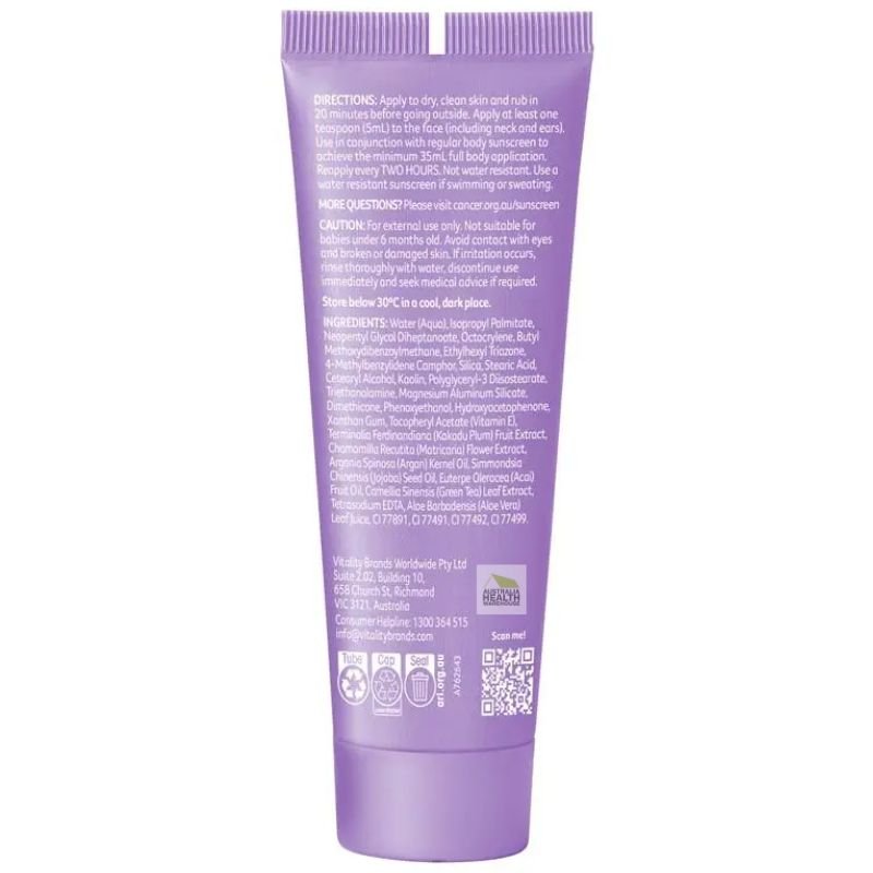 Apply to dry, clean skin and rub in 20 minutes before heading outside. On an average sized adult, approximately 35mL should be applied. This is the equivalent of 1 teaspoon of sunscreen to each arm, leg, front of body, back of body and face (including neck and ears).