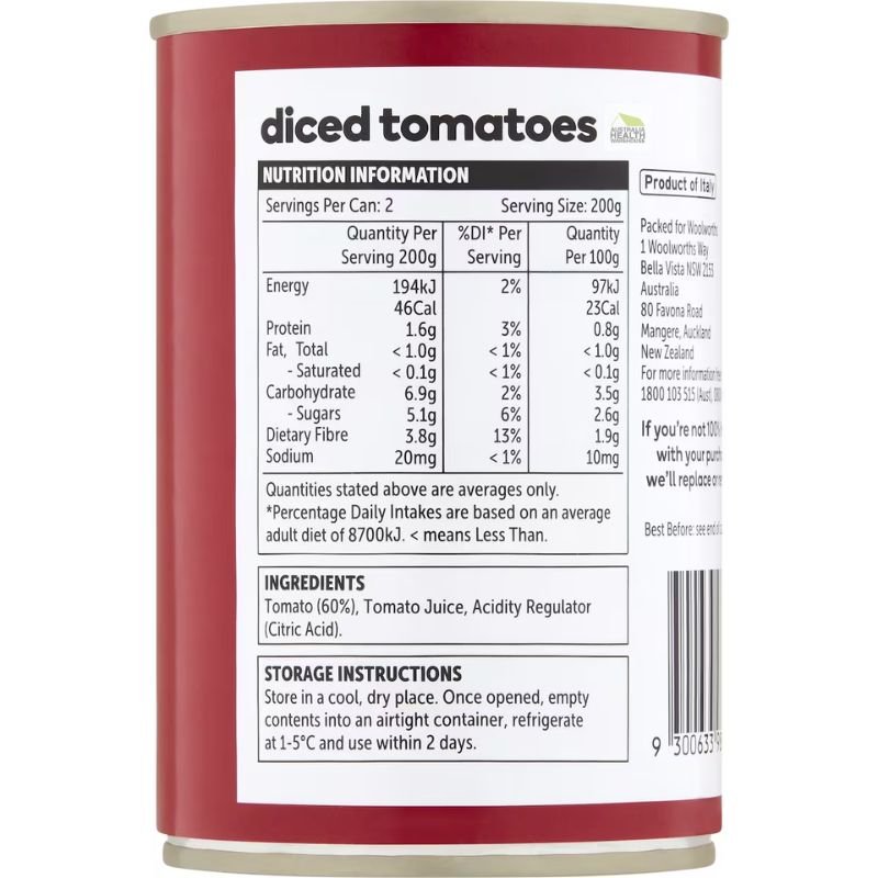 [Expiry: 08/2027] Woolworths Essentials Diced Tomatoes 400g