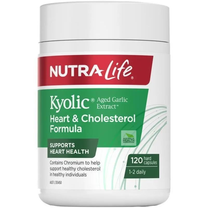 Nutra-Life Kyolic Aged Garlic Extract Heart & Cholesterol Formula combines proprietary Aged Garlic Extract with Thiamine (Vitamin B1), to support heart health, and Chromium to support healthy cholesterol levels in healthy individuals.